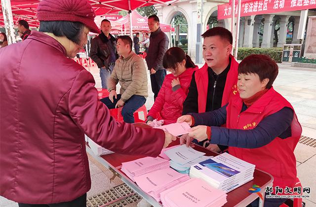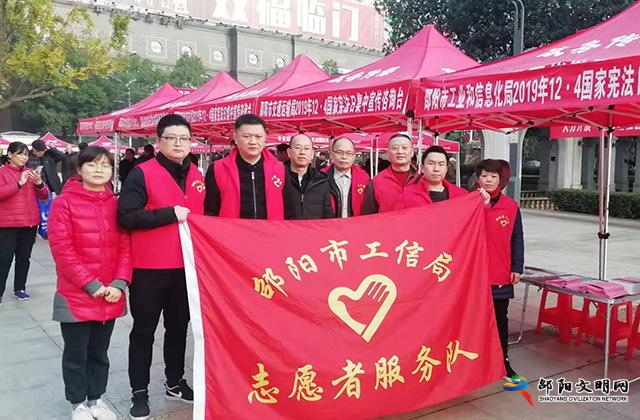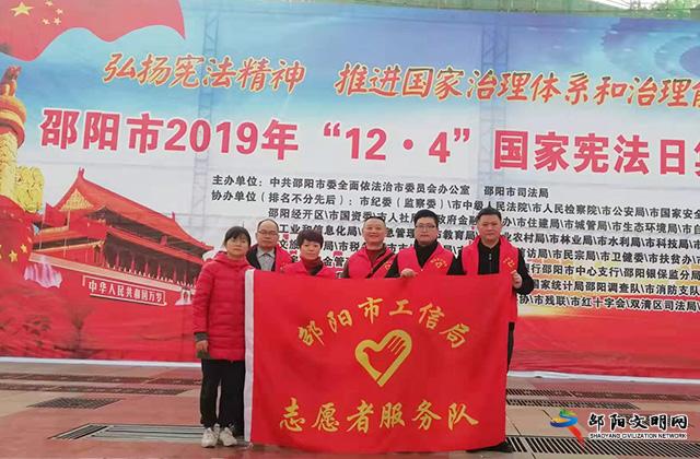邵阳文明网12月4日讯 12月4日是“国家宪法日”。邵阳市2019年“12.4”国家宪法日集中宣传活动于当天上午在城南公园举行,市工信局组织志愿者参加。