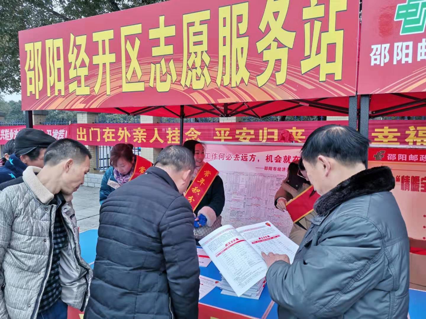 邵阳文明网1月19日讯 为更好地服务园区企业发展,帮助企业解决用工难题,继12月31日城南公园邵阳经开区专场招聘会后,邵阳经开区又联合团市委等举办“2020年‘冬日暖阳·大爱邵阳’春运直通车”活动,免费接在穂务工学习的邵阳老乡回家过年。图为邵阳经开区在“广州至邵阳”爱心高铁上及邵阳火车南站广场进行企业招工宣传。