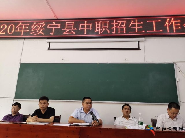 会议学习了湖南省教育厅、人力资源和社会保障厅、中共湖南省纪委湖南省监委驻省教育厅纪检监察组“关于进一步加强全省中等职业学校阳光招生工作的通知”和“湖南省高中阶段学校招生工作六条禁令”。学习了“2020年绥宁县普通中小学、中职招生工作规定”和“绥宁县2020年中等职业学校招生工作实施方案”等文件。
