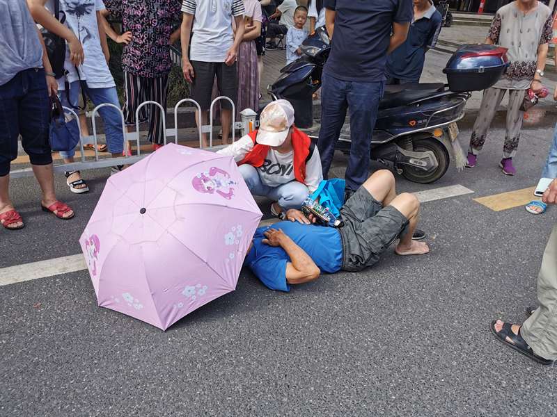 顶着烈日,耐着炙热,尽管汗水一直在流,他们还是坚守在老人旁边,借来热心群众的太阳伞一直给受伤老人撑着,让老人舒服一些,等到救护车来了,他们协助医生把老人送到车上,告诉医生老人家属的联系方式,并把老人的电动车移到单位保管,做完这些后,他们又马不停蹄地投入到自己的创文工作中。