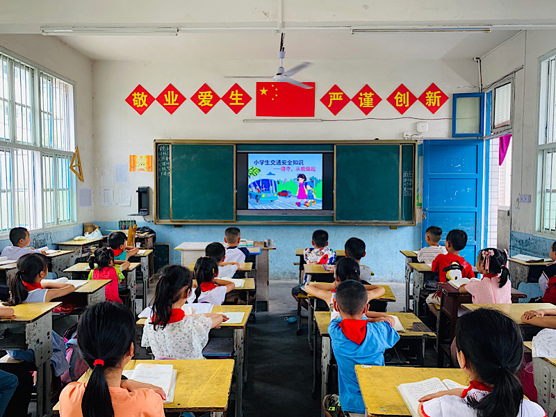班会课上,班主任为同学们识别交通标志标线,讲解步行安全知识、行车安全知识,指正交通陋习等内容。提醒小学生自觉遵守交通法规,增强自我保护能力,从小养成“安全走路、安全乘车、安全骑车”的良好习惯。