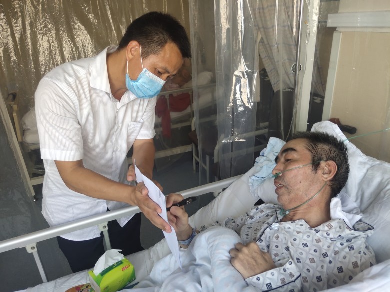秉持着 “以人民为中心”的服务宗旨,管理部立即与借款人及委贷银行联系沟通,不到半个小时就办理完毕提前还贷业务,解除了老人家的账户担保状态。随后,城区管理部王佐堂等两位党员同志顶着35℃的高温赶到中心医院,在病床旁为简王安老人办理了退休提取业务。