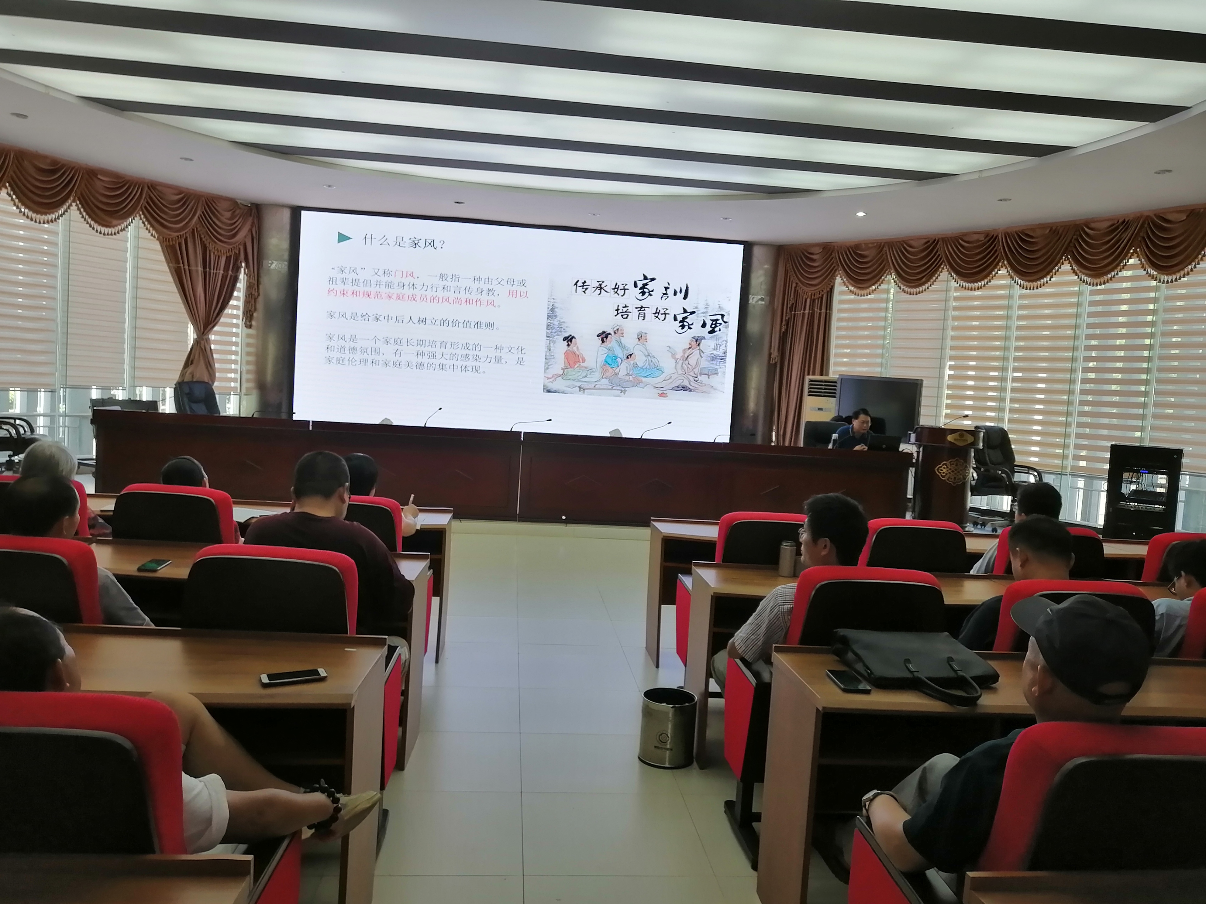 首先,党组书记、局长袁智生作了“传承好家风好家训”的讲座,对什么是好的家风、家训进行阐述,分享了习近平总书记“家庭是人生的第一个课堂”的故事,观看了《朱和平讲述爷爷朱德的勤俭家风》的视频,讲述了一些历史名人的家风家训小故事,以及日常中怎样建设家风家训等内容。