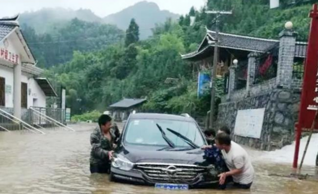 而此时,其他村干部和村民正将车辆慢慢从洪水中往安全地带推,顾不上甩一甩酸痛肿胀的双臂,舒炉宝再次扎进洪水中与大家一道将车辆从洪水中推出。最终,遇险车辆和人员全部转移到安全地带。