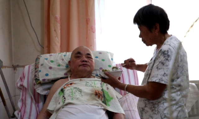 尹年庄今年80岁,系市肉联厂退休职工。由于长年劳作在阴冷湿寒的冷冻车间里,落下了病根,15年前风湿病开始发作。同时还伴有糖尿病、心脏病、脑萎缩等症,坐下时左手颤抖,走路时双腿歪斜,生活不能自理。有道是“福无双至,祸不单行”,3年前,尹年庄又突发脑梗塞导致瘫痪,出院后女婿提议送养老院休养。李连英放心不下,到养老院实地考察后,觉得护理条件不如家里,坚持将丈夫接回家里悉心照顾。