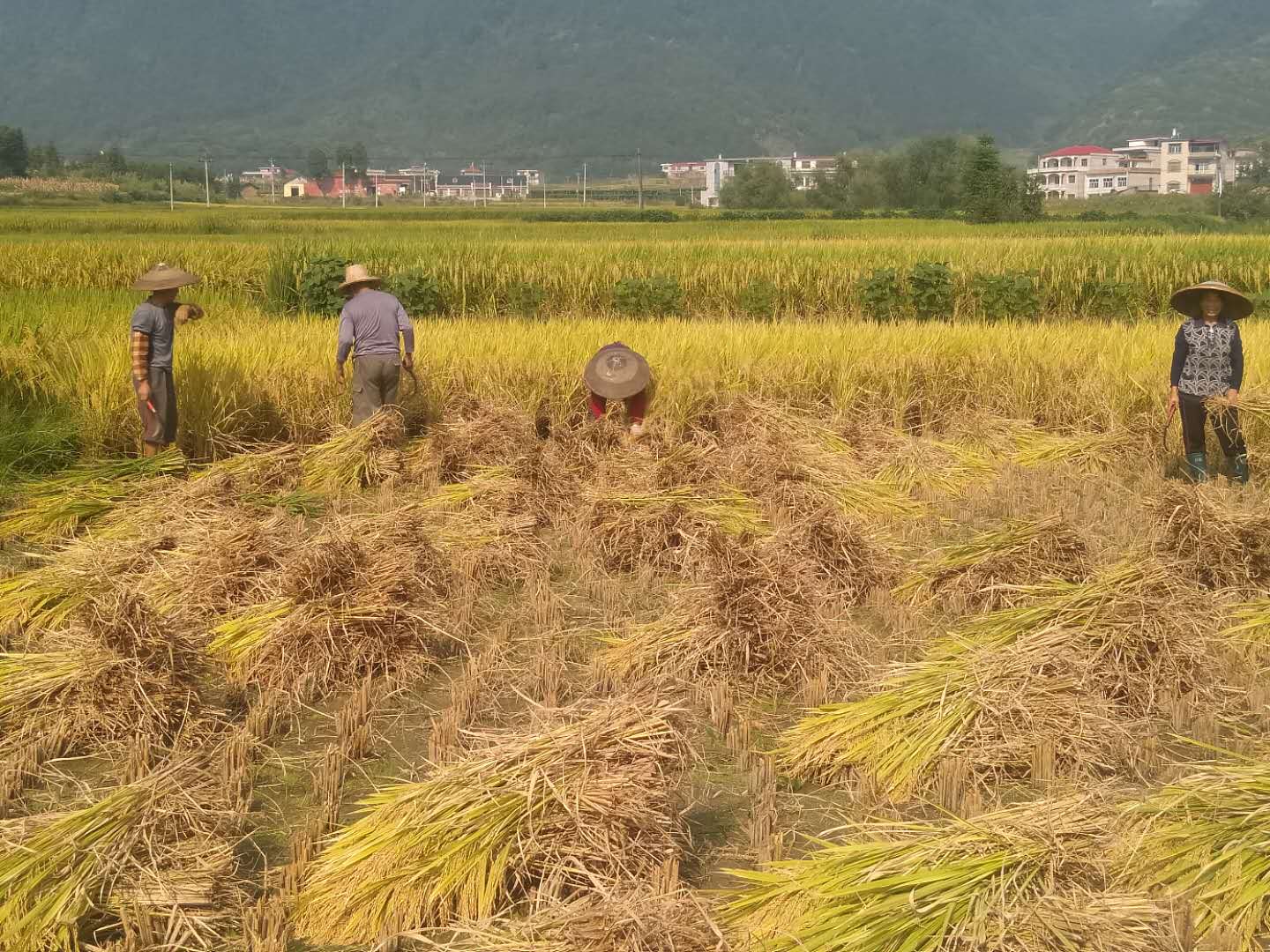 邵阳文明网讯 又到了一年的收获季节,金黄的稻谷在田野里随风起伏,武冈市的乡村群众抓住好天气正忙着收割稻谷,农民朋友们穿梭在稻浪之间。虽然头顶烈日,但大家干得热火朝天,有的挥镰收割,有的打谷,有的运输稻谷,呈现出一派繁忙景象。