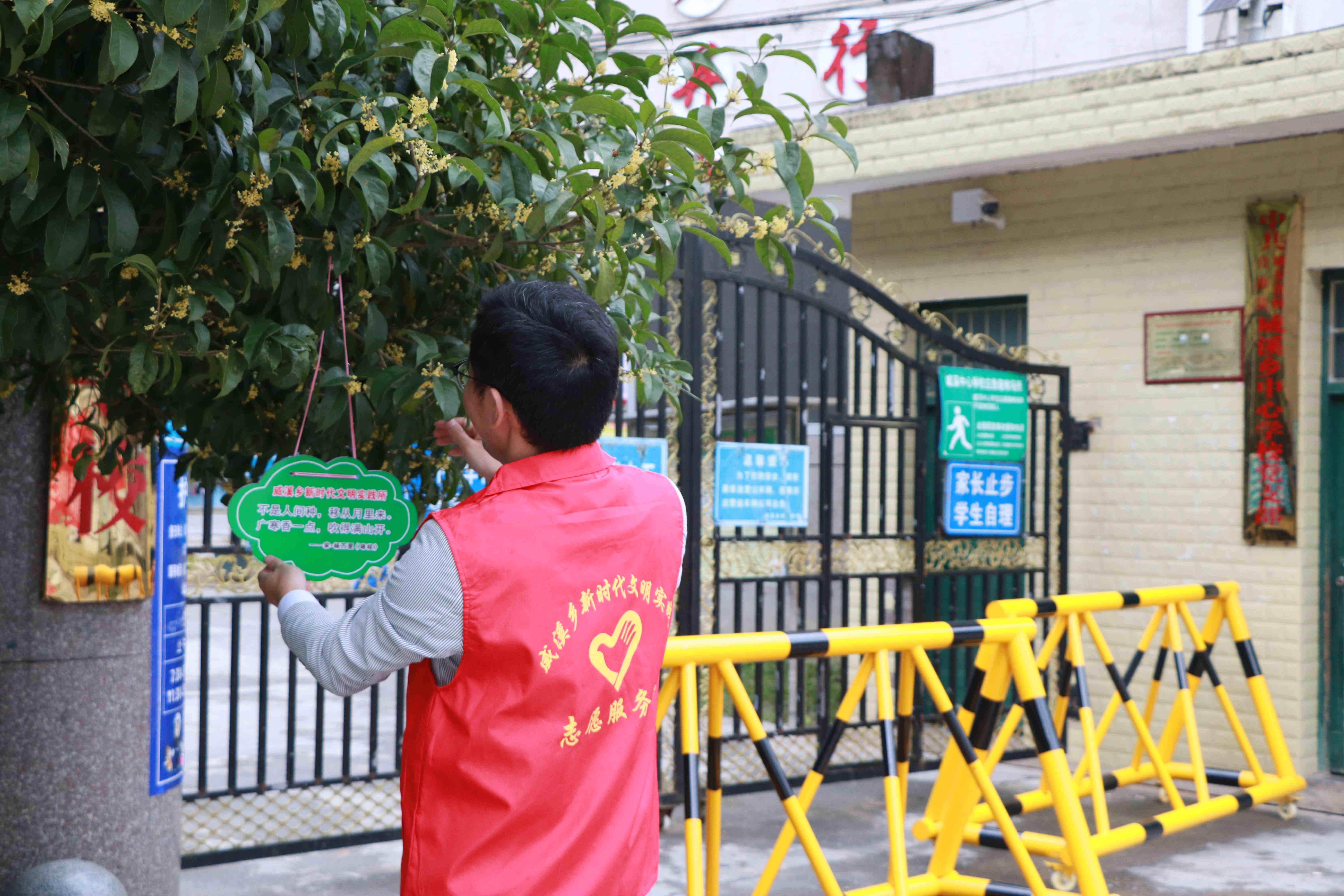 邵阳文明网讯 秋分时节的威溪,丹桂飘香。9月24日,城步苗族自治县威溪乡新时代文明实践志愿者为乡内多颗桂花树挂上了“诗词牌”,营造了浓厚的文化氛围。