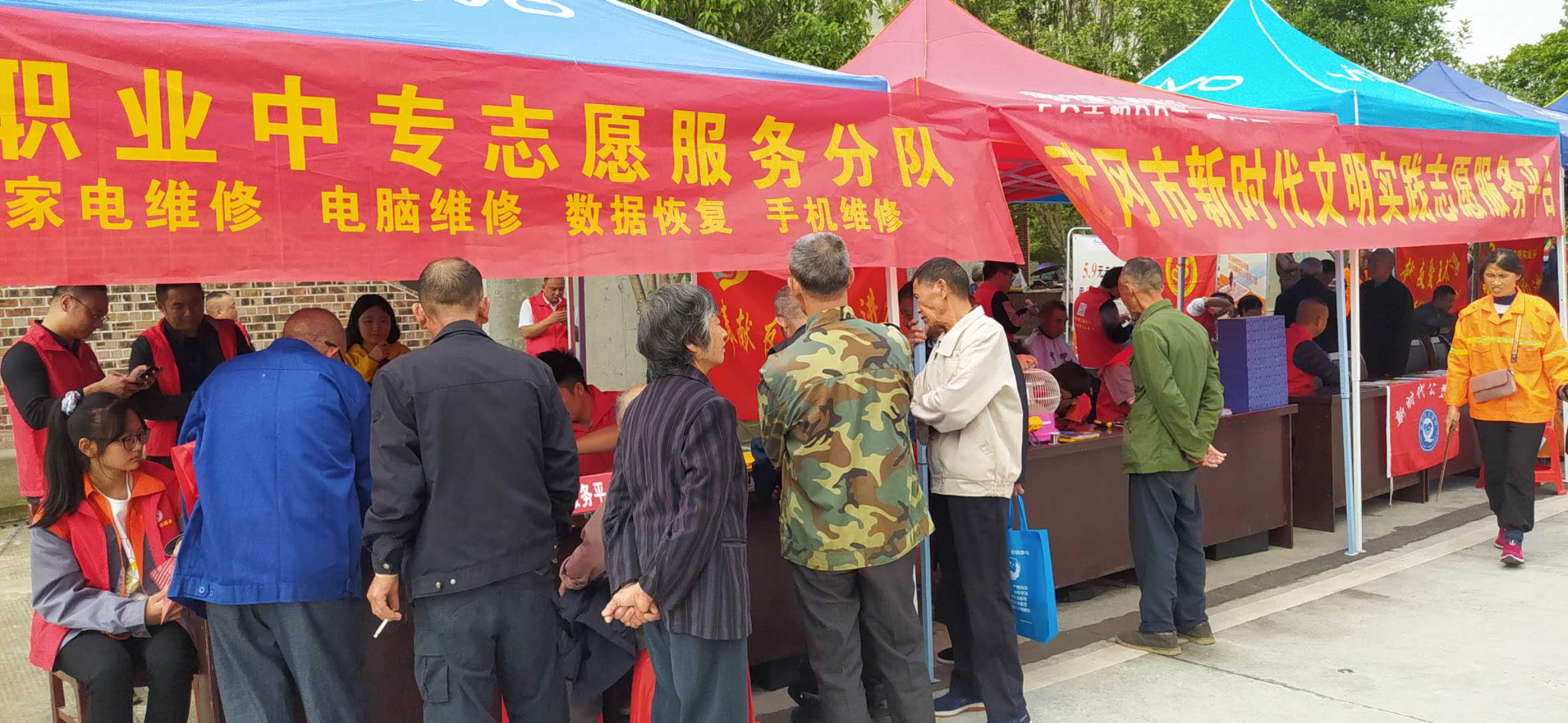 邵阳文明网讯 为践行“奉献、友爱、互助、进步”的志愿精神,将新时代文明实践活动落到实处,切实打通关心群众、服务群众的“最后一公里”。2020年9月24日,武冈市职业中专学校志愿者服务队在湾头桥镇“善星小集”启动仪式暨“半条被子”宣讲活动中,积极为居民开展“家电维修”志愿服务。