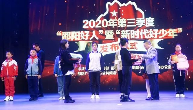 邵阳文明网讯 10月30号上午,我市2020年第三季度“邵阳好人”暨新时代好少年发布仪式在市文化馆举行。市委常委、宣传部长周迎春出席并讲话。