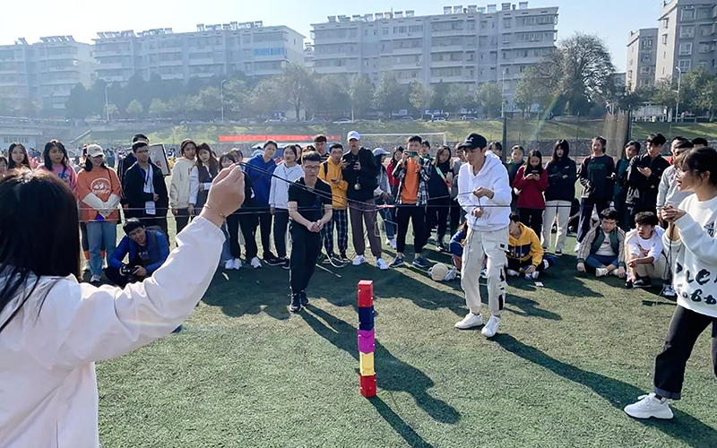 随着裁判的一声令下,比赛“鼓动人心”率先展开激烈角逐。在各团队此起彼伏的加油助威声中,团队成员默契配,调整呼吸和脚步,保持牵引绳子的最佳力度,确保乒乓球落点准确;随后,在一片欢呼雀跃的欣喜呐喊中,“无敌风火轮”开始了比拼,团队成员统一口号,齐心协力,全员极速前进,奋力向终点前行;“袋鼠运瓜”比赛中 ,各成员身着袋鼠装,依据比赛规则要全程跳跃前进,运送口袋中的皮球,现场气氛高潮迭起……