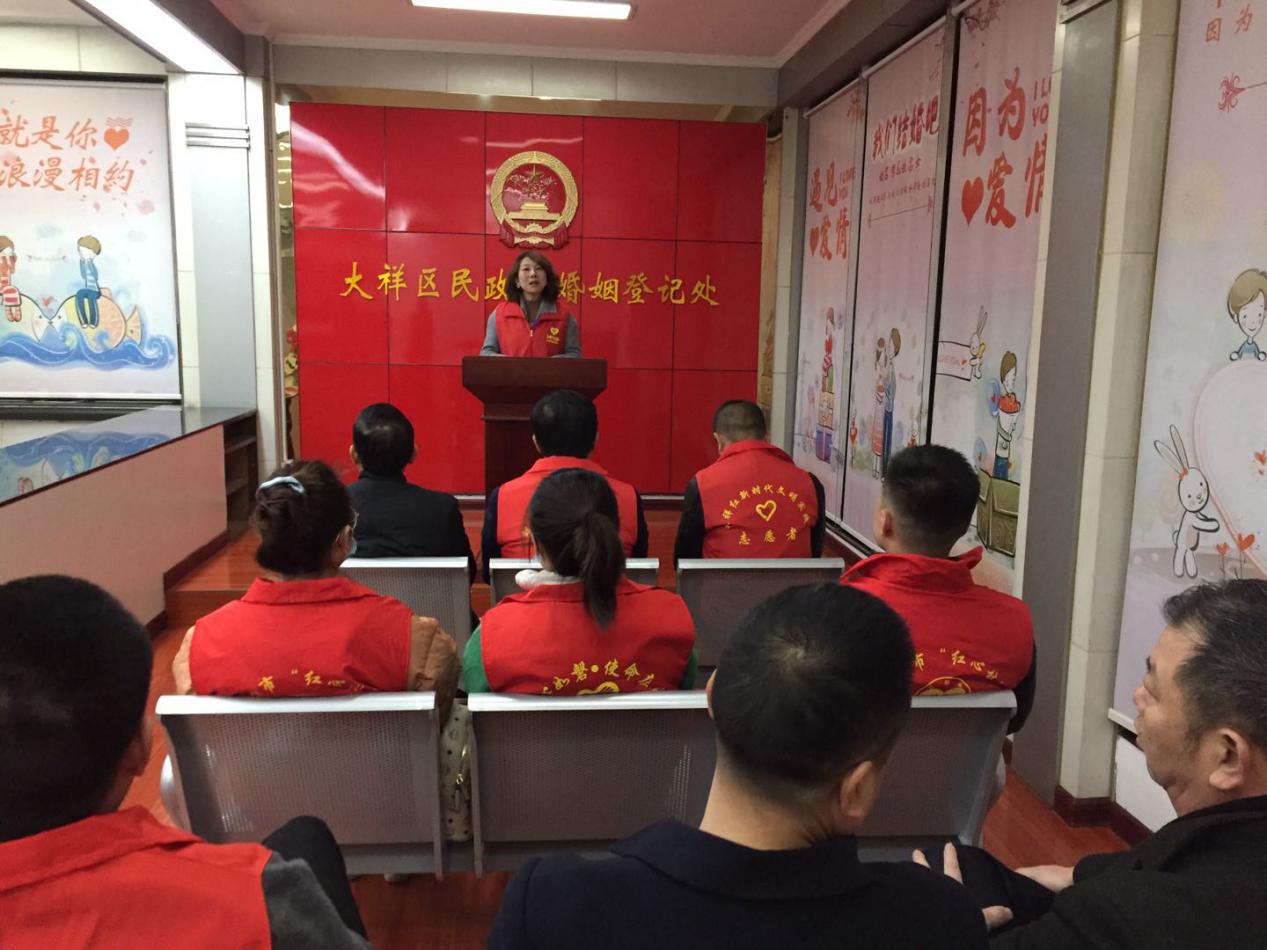 邵阳文明网讯 近日,大祥区“镜圆”婚姻公益辅导项目启动仪式在区政务服务中心举行。大祥区委宣传部、区创文办、区民政局、区司法局、区妇联、区行政审批局相关负责人以及30多个志愿者参加。