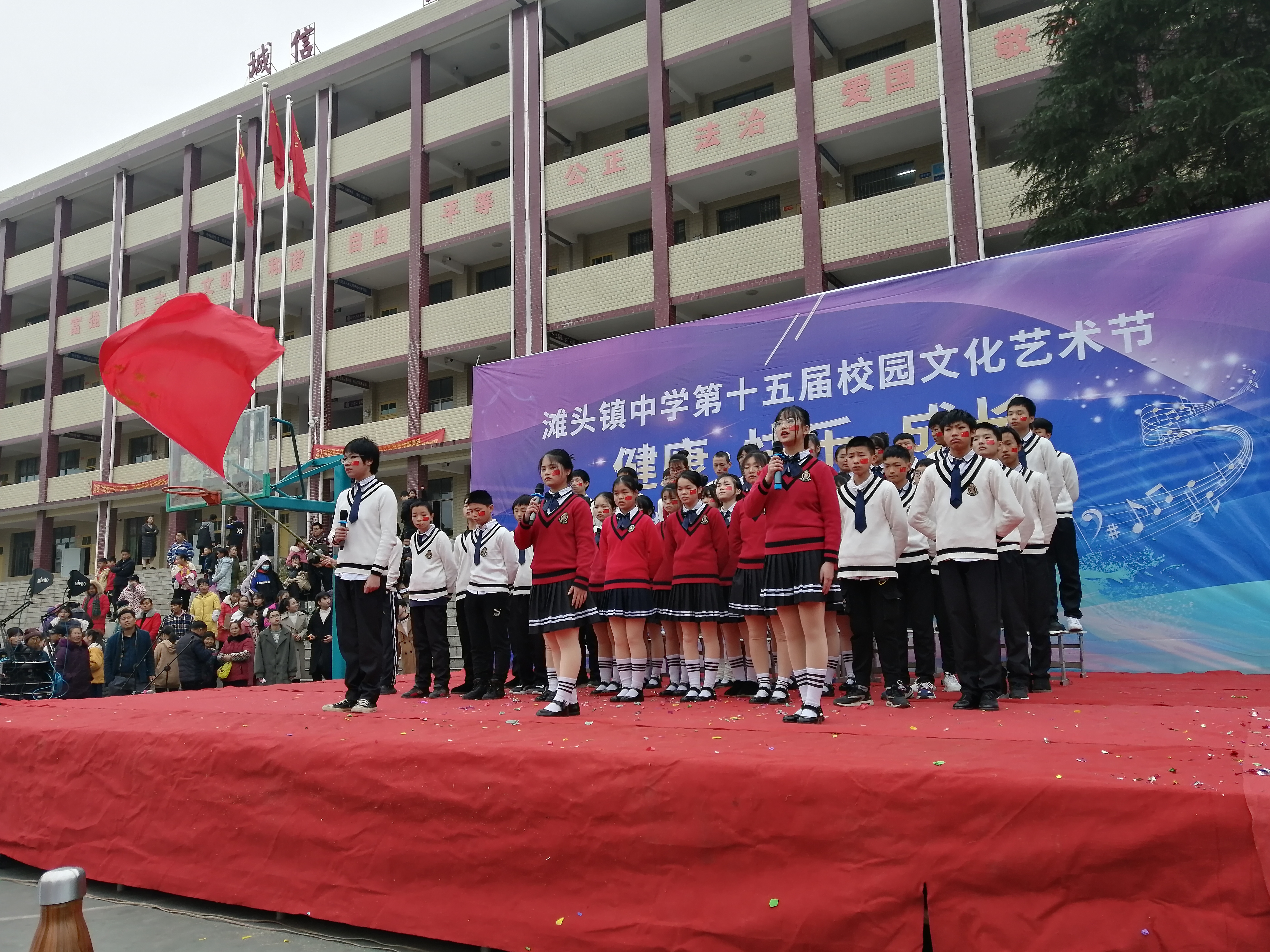 邵阳文明网讯 12月11日,隆回县滩头中学举办了第十五屆校园文化艺术节。演讲、朗诵、舞蹈、话剧、情景剧、小品等艺术门类的28个节目参演,节目精彩纷呈,展现出极大的创新潜力和实践能力。
