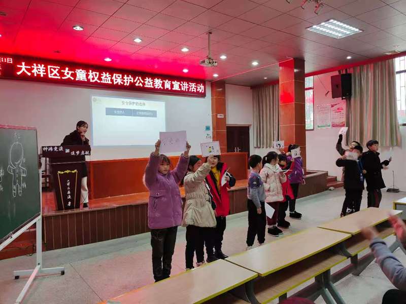 邵阳文明网讯 12月11日,大祥区女童权益保护公益讲座走进新渡小学,来自区检察院的巾帼志愿者、区妇联女童权益保护宣讲讲师为该校四年级150名学生带来了一堂生动的《青春安全我保护》课程。