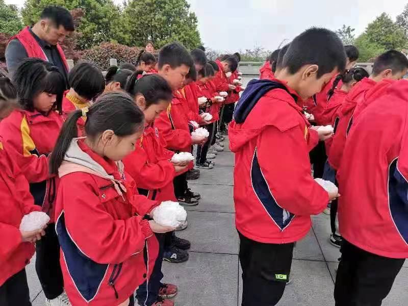 学生手持纯白纸花,在革命烈士纪念碑前向革命烈士肃立默哀,表达对烈士的崇高敬意和深切悼念。教师代表向同学们讲解了先烈事迹和赋予当代少年的历史使命。