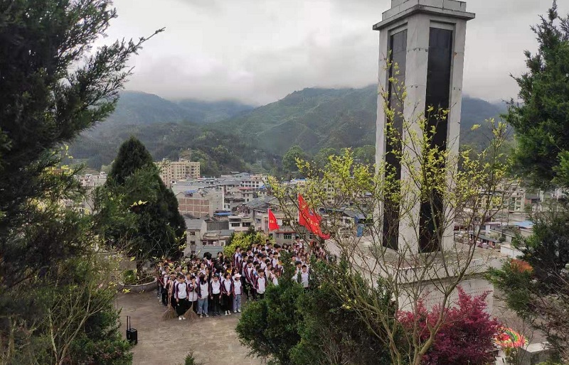 4月1日,洞口县江口镇中学全体师生前往抗战烈士纪念碑举行“弘扬传统,缅怀英烈,思念亲人,不忘文明”为主题的清明祭扫活动。