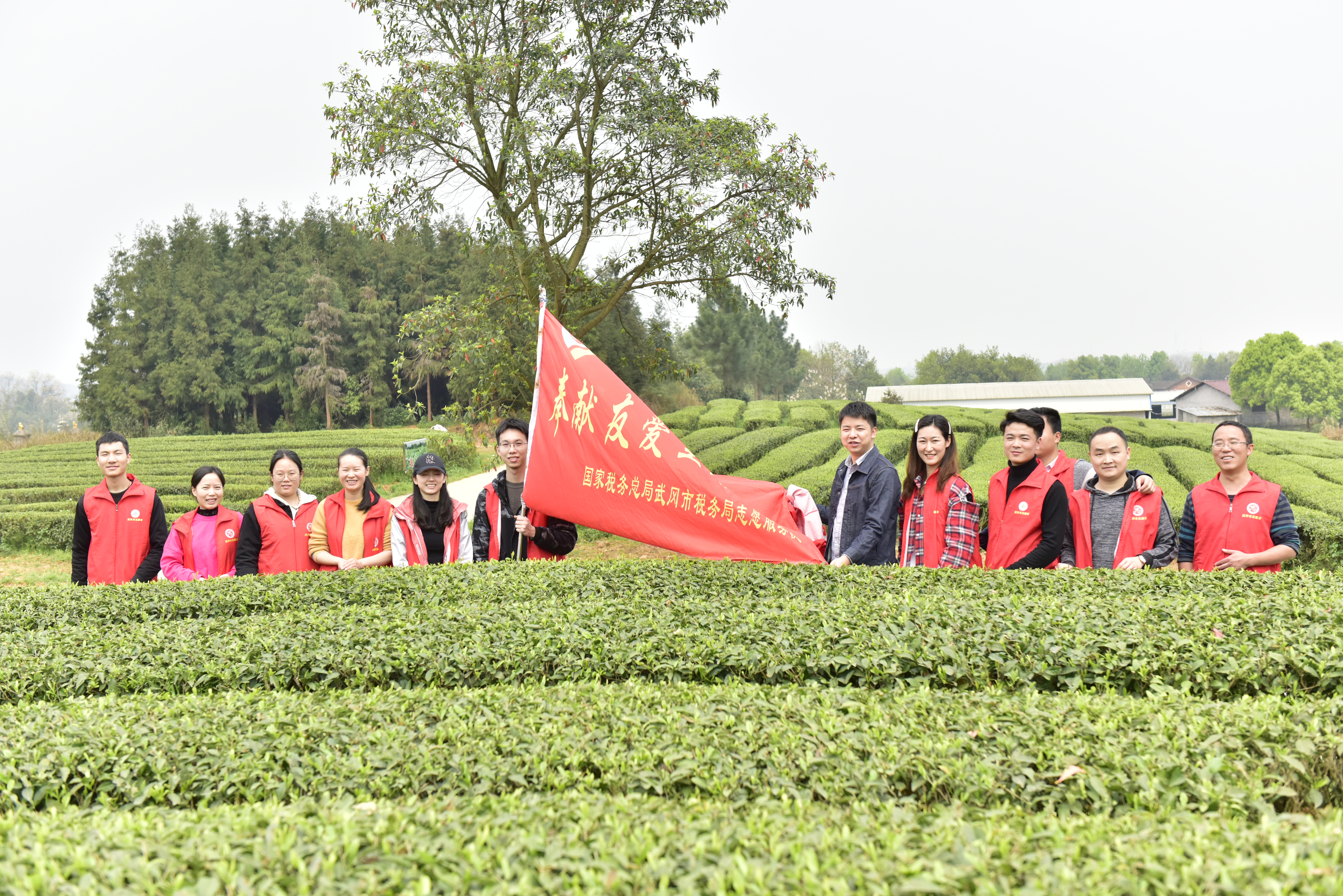 春雷响、万物长,百亩茶园里漫山的小茶树郁郁葱葱,小嫩芽争先恐后地冒出来,等待采收。活动中,志愿者们身披红马甲穿梭于茶林之间,采摘鲜嫩的芽叶,茶林中的红影与绿叶相印,成为一抹靓丽的风景。“春茶就是要赶季节,如果不及时,茶叶就成了树叶子。武冈市税务局的志愿者们自愿到我的茶园来,帮工人们干活,大大加快了我们的工作进度。”茶园的工人们对志愿者的到来十分欢迎。