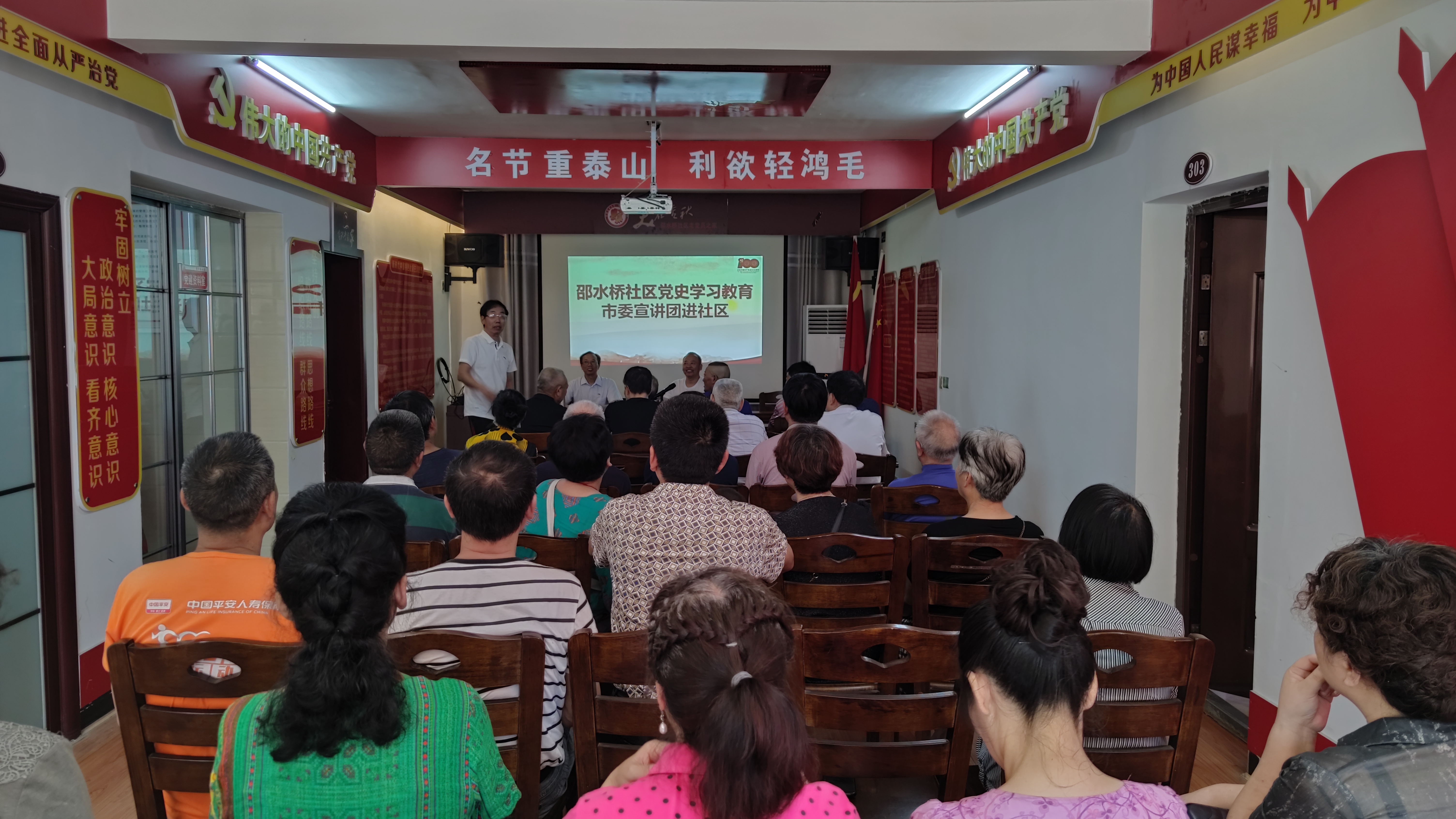 5月14日上午,为深入学习领会习近平总书记在党史学习教育动员大会上的重要讲话精神,东风路街道邵水桥社区在党员活动中信开展以“学史崇德”为主题的党史学习宣讲活动,本次党课由市委党校党史教育宣讲团专家进行授课。
