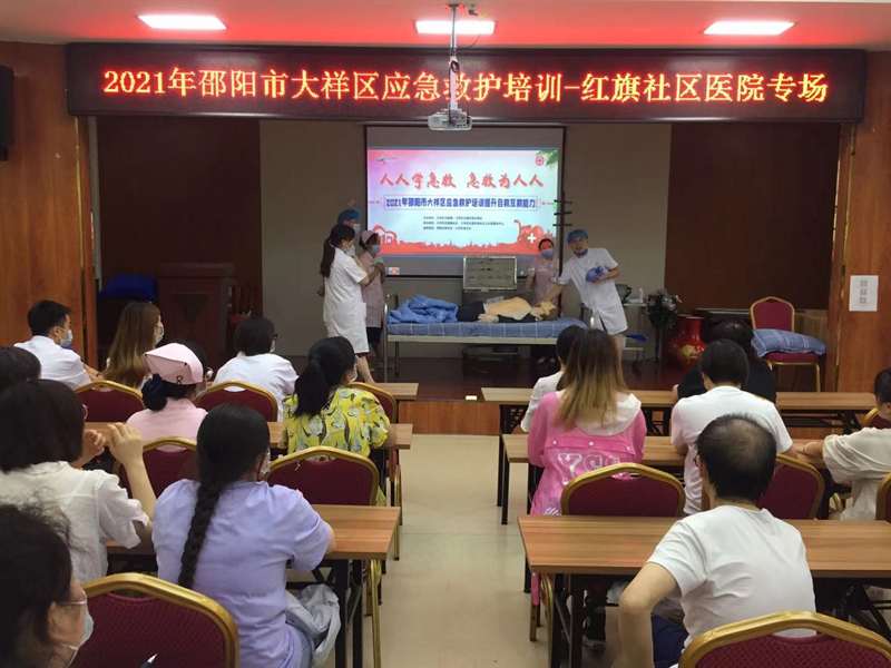 为了提高医护人员的应急救护能力,掌握心肺复苏技能操作技术,营造“人人学急救,急救为人人”的良好氛围,近日,大祥区卫健局联合红旗社区医院组织所有的医务人员开展了应急救护培训。此次培训特邀请了邵阳学院附属第二医院急诊科王国阳主任进行专题理论讲授,并组织现场演练。医务人员和居民共40余人参加。