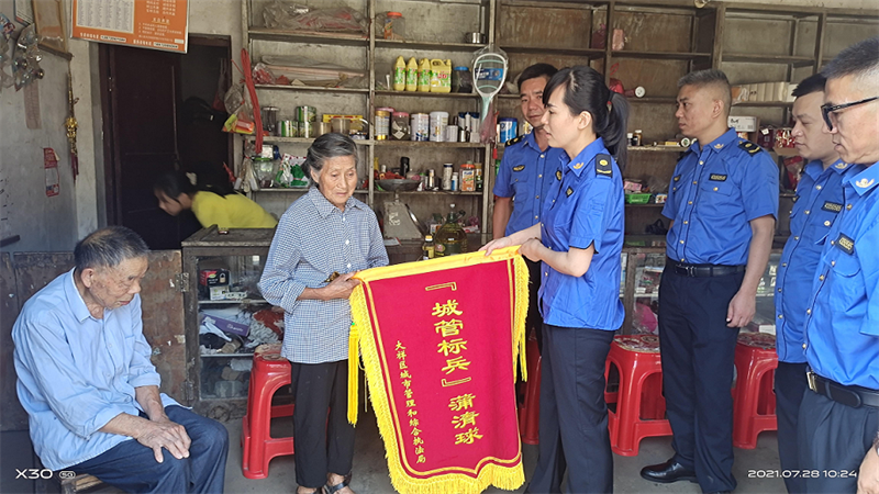 在“八一”建军节来临之际,大祥区城管执法局局党委及局工会前往隆回县看望因公殉职蒲清球父母,为其送上锦旗和慰问品。