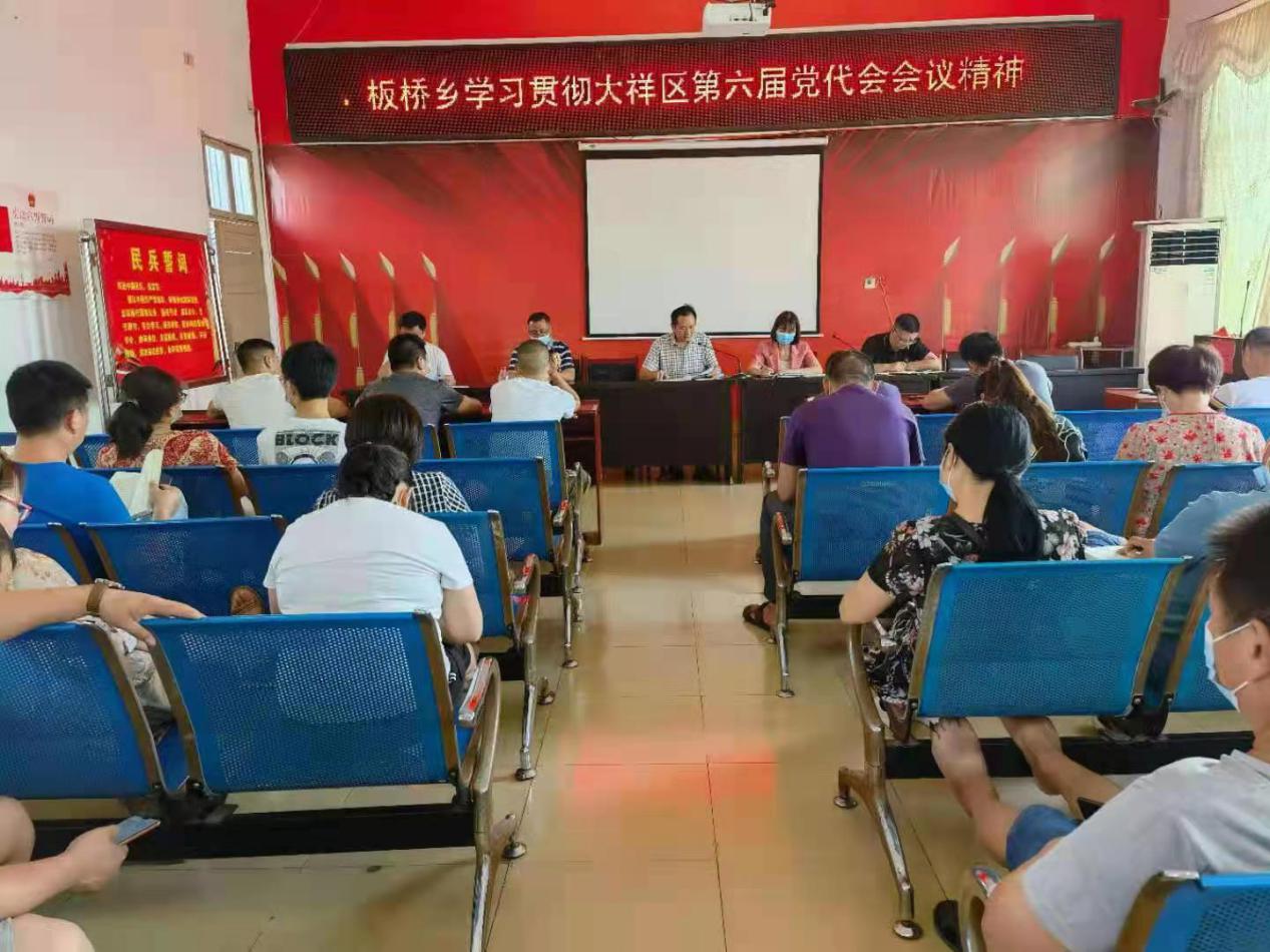 8月2日板桥乡召开全体干部大会,传达了大祥区第六次党代会精神。要求全体干部职工思想统一到区委决策部署上来,要原汁原味传达会议精神;要聚焦重点抓落实;要建强队伍抓落实。