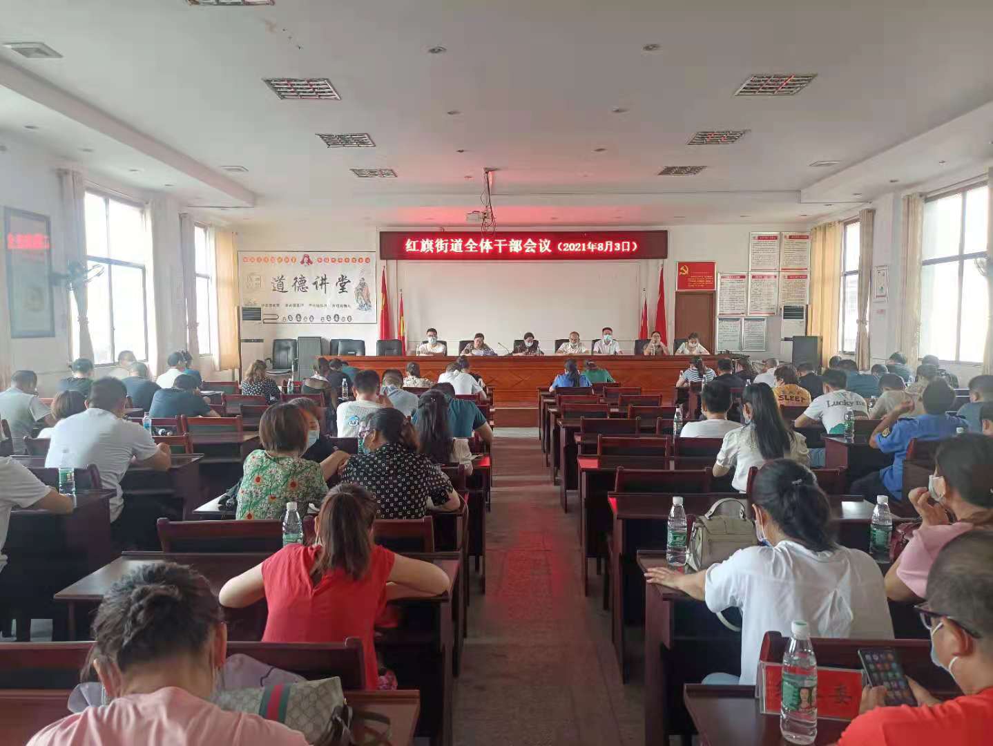 8月3日上午,红旗路街道召开全体干部大会,组织学习区党代会精神。会议要求全街道上下要将会议精神传达至每一位党员、每一名干部,努力把思想和行动统一到党代会精神上来,迅速掀起学习热潮,全力开创各项工作新局面;深刻认识过去五年大祥区取得的成就,以全力打造“五城三园三中心”,高质量建成“智慧大祥区、文化生态城”为奋斗目标,谋划红旗街道未来发展蓝图;结合实际制定干部激励方案,不断激发干事创业热情,使街道党员干部永葆“闯”的精神、“创”的劲头、“干”的作风,充分展现红旗面貌。