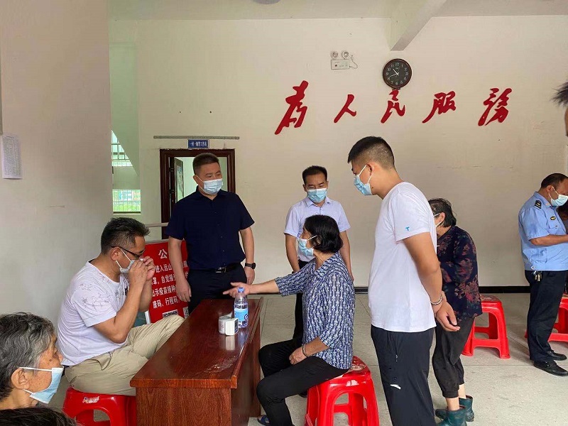 隆回县人民政府副县长提名人选杨喜国(左三)指导西洋江镇疫苗接种流动点接种工作