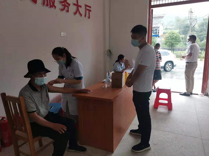 8月17日上午9点30分,下着小雨,一辆载有医务人员的面包车缓缓开进西洋江镇远山村村务服务中心,迎来了已经在此等候接种新冠疫苗的20多名群众一片欢呼。