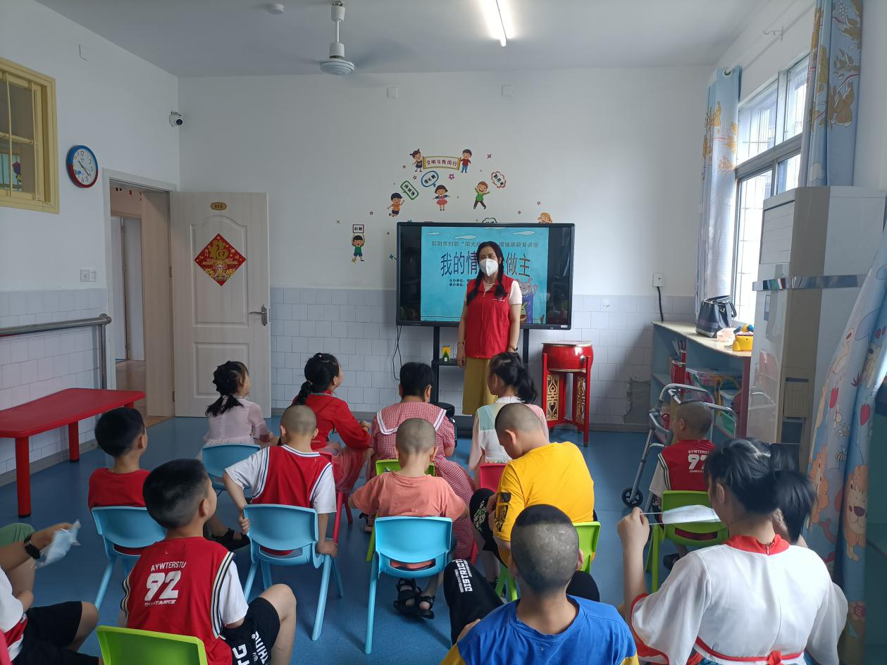 随后邵阳市妇联的志愿者参观了该院的儿童生活区和康复中心,看见该院环境优美、设施完善,孩子们有专人照顾,都能接受到优质的康复服务,大家感到十分欣慰,感慨于政府对于这群特殊儿童的重视与关怀。除了物质方面的关怀,妇联的志愿者还给该院的孩子们上了一节生动的心理辅导课,对他们进行心理疏导,为孩子们的明天筑梦。