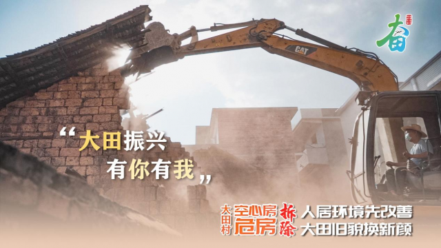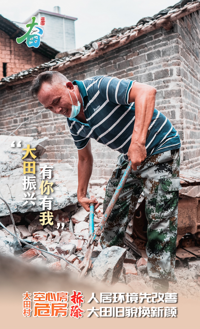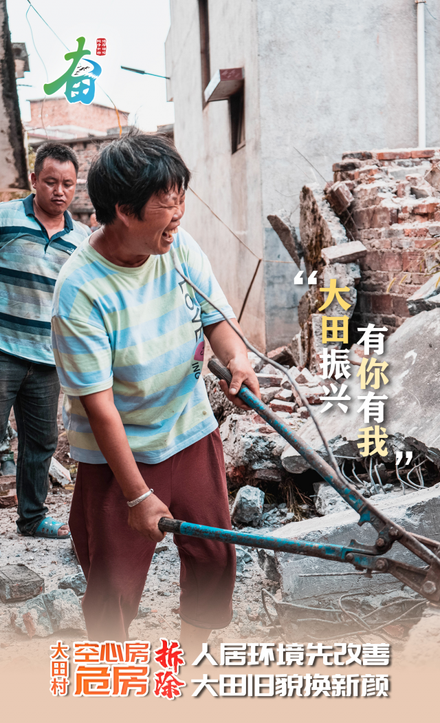 在拆除“空心房、危房”的过程中,附近的乡亲们都来帮忙了,一起参与到大田村的人居环境整治的行动中。