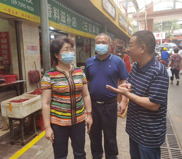 在大祥区南门口农贸市场和双清区三眼井食品城农贸市场,周迎春实地查看了市场及周边商铺的创文公益宣传、市场服务行为、活禽宰售干湿分离等工作,就创建工作中存在的突出问题进行现场交办。