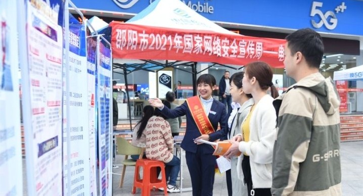 活动当天,中国电信邵阳分公司、中国联通邵阳分公司、中国铁塔邵阳分公司、中国移动邵阳分公司纷纷开展营业厅线下网络安全宣传活动。通过发送网络安全公益短信、营业厅现场讲解、发放宣传资料、悬挂宣传条幅、张贴海报、LED屏滚动播出公益广告和视频等多种形式,向市民宣传网络安全及防范电信网络诈骗相关知识。