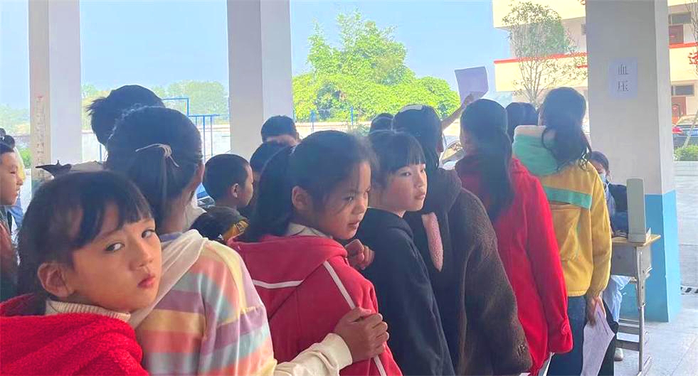 湾头桥镇中学教师积极配合医院开展工作,组织好学生秩序井然的排队,让整个体检活动顺利进行。