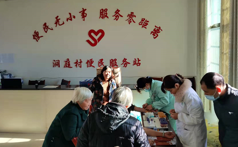 体检当天,医护人员带着体检仪器及设备,早早走进洞庭村。此次体检项目包括心电图、血压、B超、血常规、血脂、血糖、视力等常规检查。对于行动不方便、卧床的老人,医护人员亲自登门为老人进行体检。