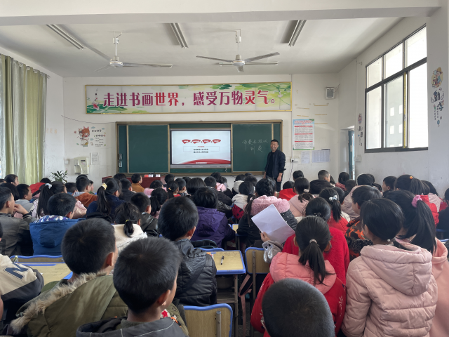 邵阳文明网讯(孙友平 李晗 张修竹 高琦)“老师,这个字我认识,是中国心的心字”。在一幅“一往无前砥砺行 凌云壮志初心在”的篆书作品前, 一个朋友激动不已。12月3日,来自邵阳学院艺术设计学院的志愿者来到绥宁的瓦屋塘镇学校,开展“童心向党”主题教育实践活动,书法、红色文化艺术展和7个实践课堂,润物无声地浸染着孩子们,厚植爱党、爱国、爱社会主义的情感,让红色基因、革命薪火代代传承。