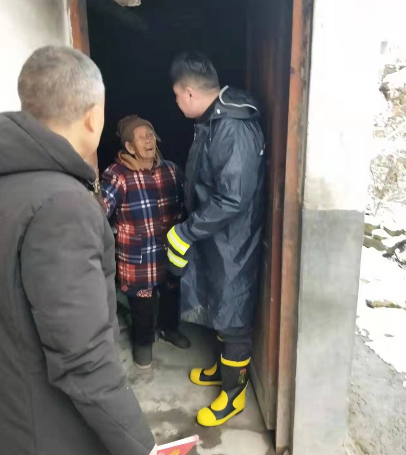 逐户“敲门”入户,做好用火用电、低温冰冻天气安全防范宣传