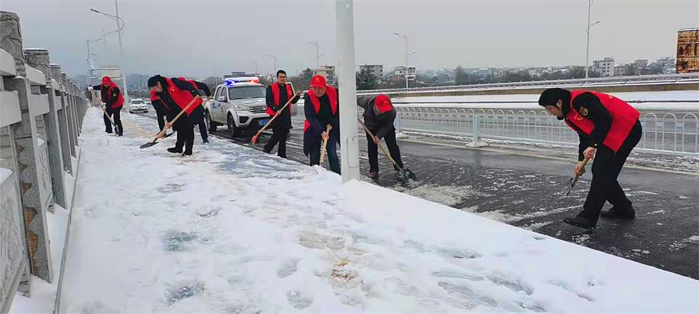 邵阳文明网讯(通讯员刘和平 罗静)12月26日,武冈全域范围迎来入冬以来第一场强降雪,然而当人们尽享纷纷扬扬飘落雪景的同时,这场暴雪也给广大群众的出行带来了不便和安全隐患。面对冰雪挑战,12月27日,武冈辕门口街道办事处党工委书记庾少波、主任戴修军带领街道党员干部、工作人员在辖区内积极开展清雪除冰、保畅通、保秩序、保安全志愿者服务活动。