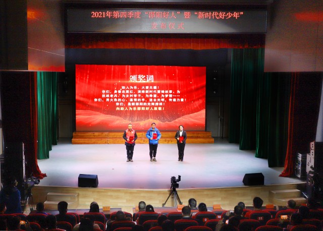 仪式通过短片播放、现场访谈、颁奖表彰、“新时代好少年”为“邵阳好人”系红领巾和敬队礼等形式,展示了先进典型的优秀感人事迹,汇聚成我市公民道德建设强大的精神力量。2021年第四季度,我市通过单位推荐、网络投票、专家评审等环节,最终产生了助人为乐、见义勇为、诚实守信、敬业奉献、孝老爱亲5个类别20名“邵阳好人”和14名“邵阳市新时代好少年”。近年来,由市委宣传部、市文明办牵头,坚持每季度发布“邵阳好人”及“新时代好少年”榜单,2021年共有86人荣登“邵阳好人榜”,54人获评“邵阳市新时代好少年”。