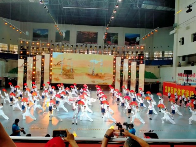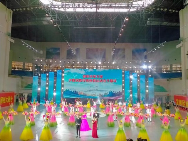 开幕式结束后,舞蹈《龙·行》拉开了文艺表演的序幕,诗与歌《少年中国说》、少数民族歌舞《远方的客人请你留下来》、回族舞蹈《母亲是中华》、创意文体表演《活力飞扬》、歌舞《大美新邵》依次闪亮登场。