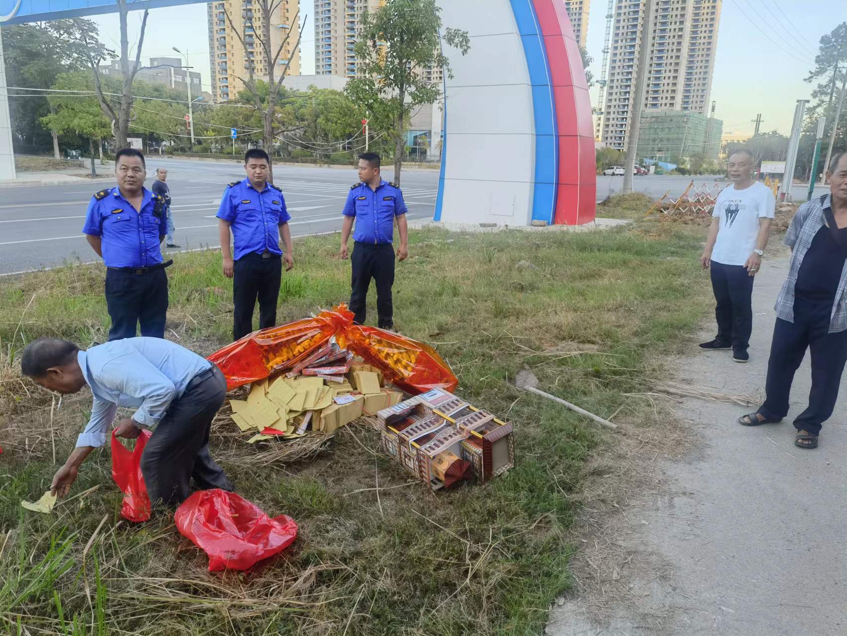 加大巡查力度。8月11日16点30分,该镇自然资源和生态环境办全员出动,采取定点定岗和流动巡查相结合的方式进行巡查劝导值守工作,确保令行禁止,对违规焚烧行为及时进行制止、劝阻,对拒不配合的直接联系经开区城管直属分局进行处理,有效禁止焚烧纸钱、冥币等祭祀品。