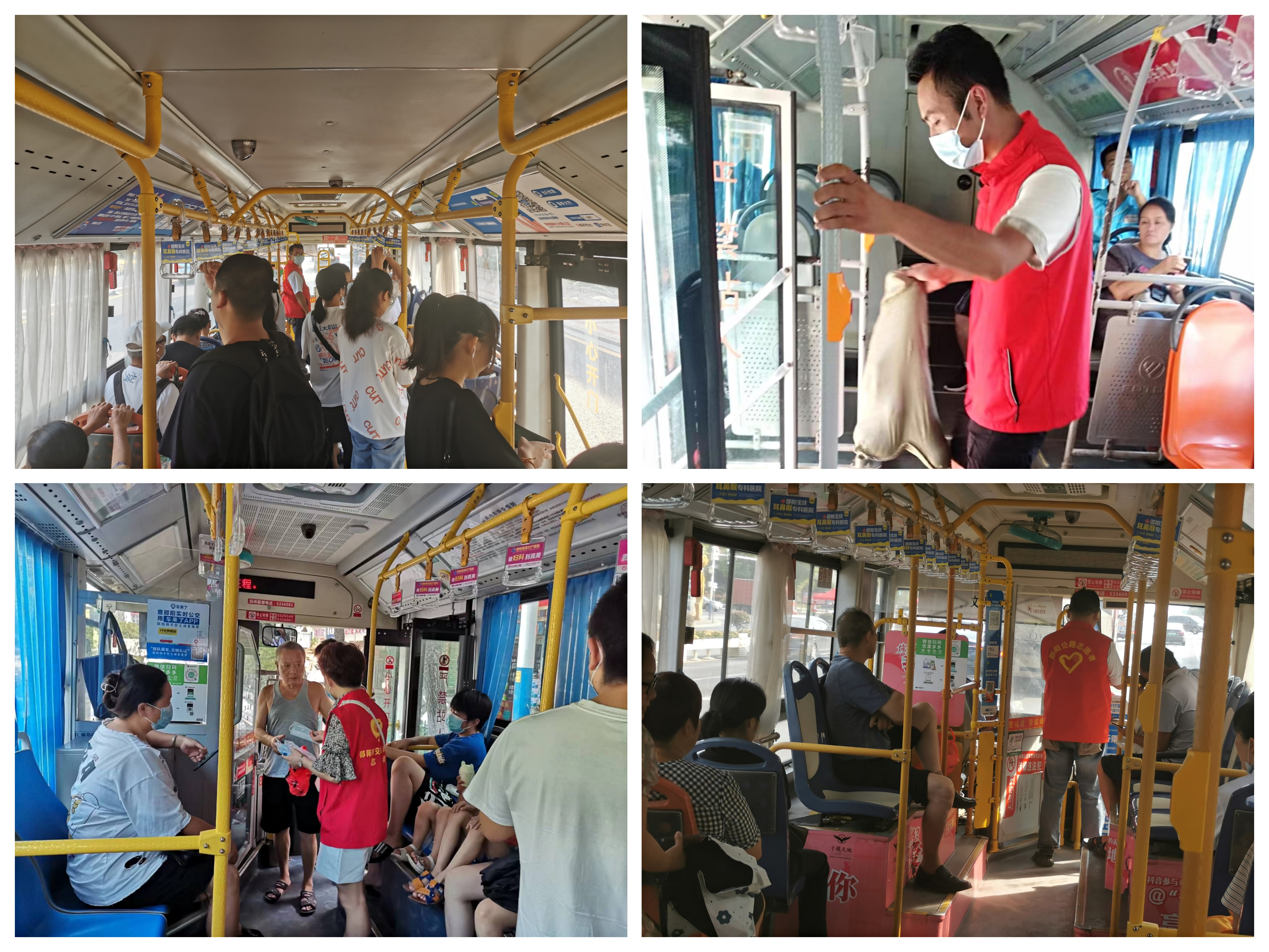 (志愿者们清扫公交车)