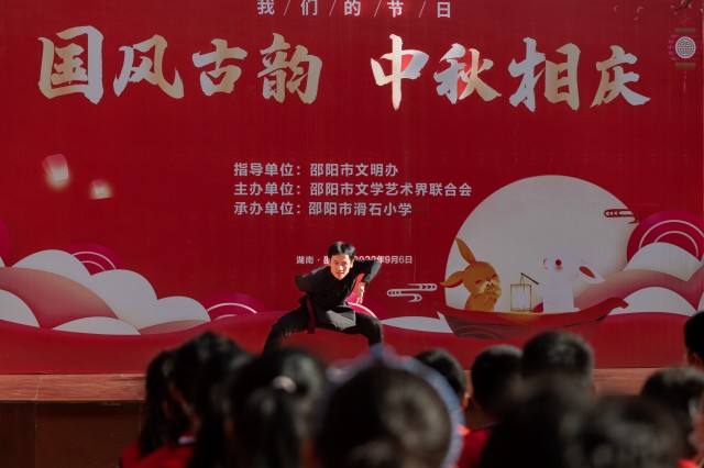 文艺演出在二胡齐奏《战马奔腾》中拉开了序幕。表演节目精彩纷呈、形式丰富多样,蒙古族舞蹈《心之灵》、朗诵《沁园春·中秋》《江城子·中秋寄月》、古筝演奏《拔根芦柴花》、古琴演奏《碧涧流泉》、独唱《我是邵阳人》等一个个精彩节目轮番上演。精彩的表演让观看的师生们从中感受到传统文化艺术的独特魅力,现场笑声连连,掌声和喝彩声不断。
