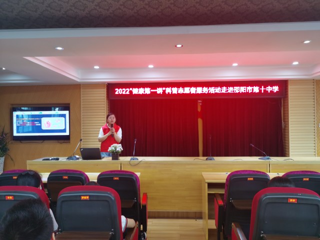9月9日下午,由邵阳市创文办牵头组织,市科技志愿者协会和邵阳学院附属第二医院健康科普宣讲团共同策划的“健康第一讲”系列活动在邵阳市第十中学正式启动。