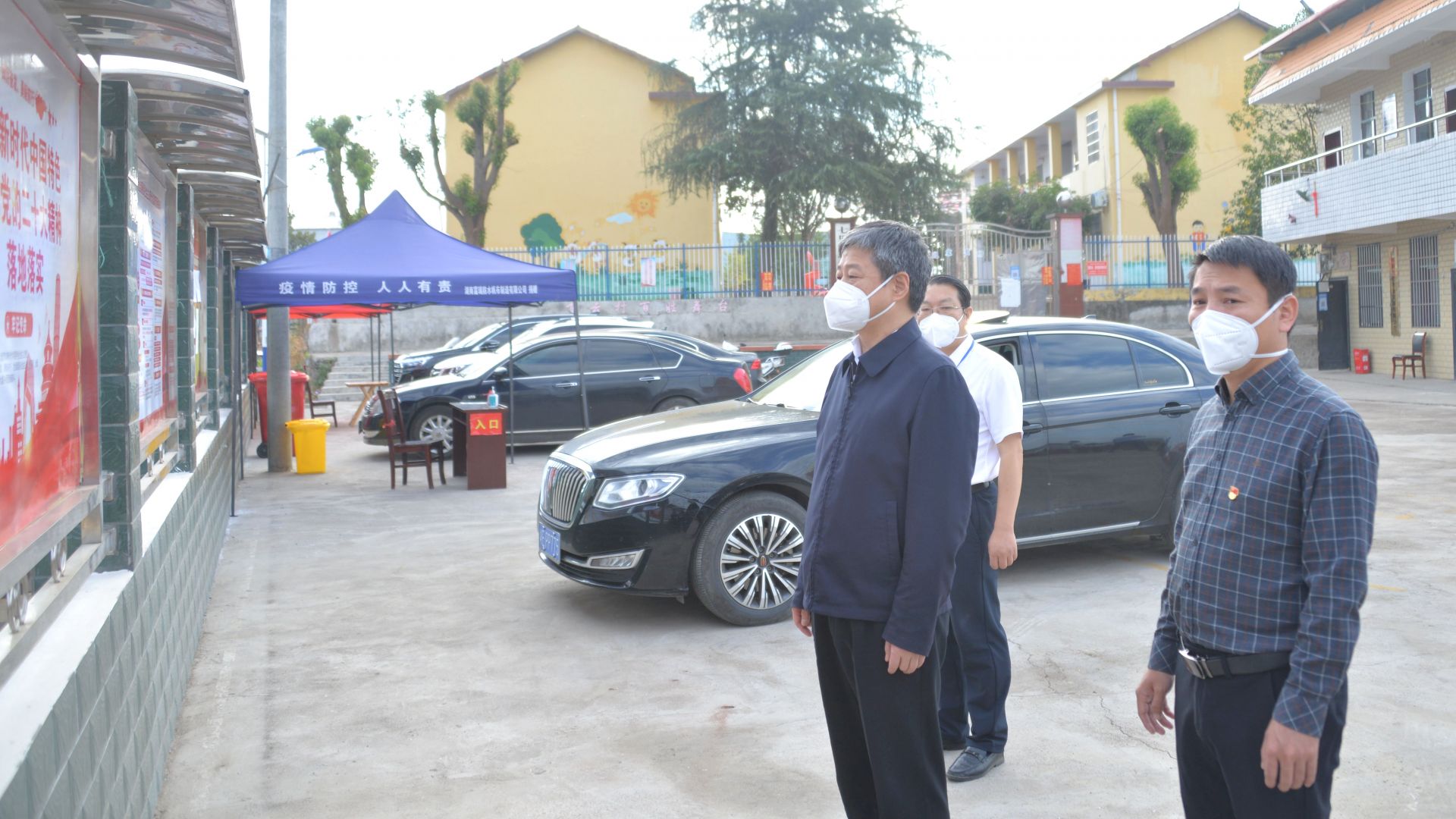 严华在飞云村了解学习宣传贯彻党的二十大精神、疫情防控、乡村振兴等情况