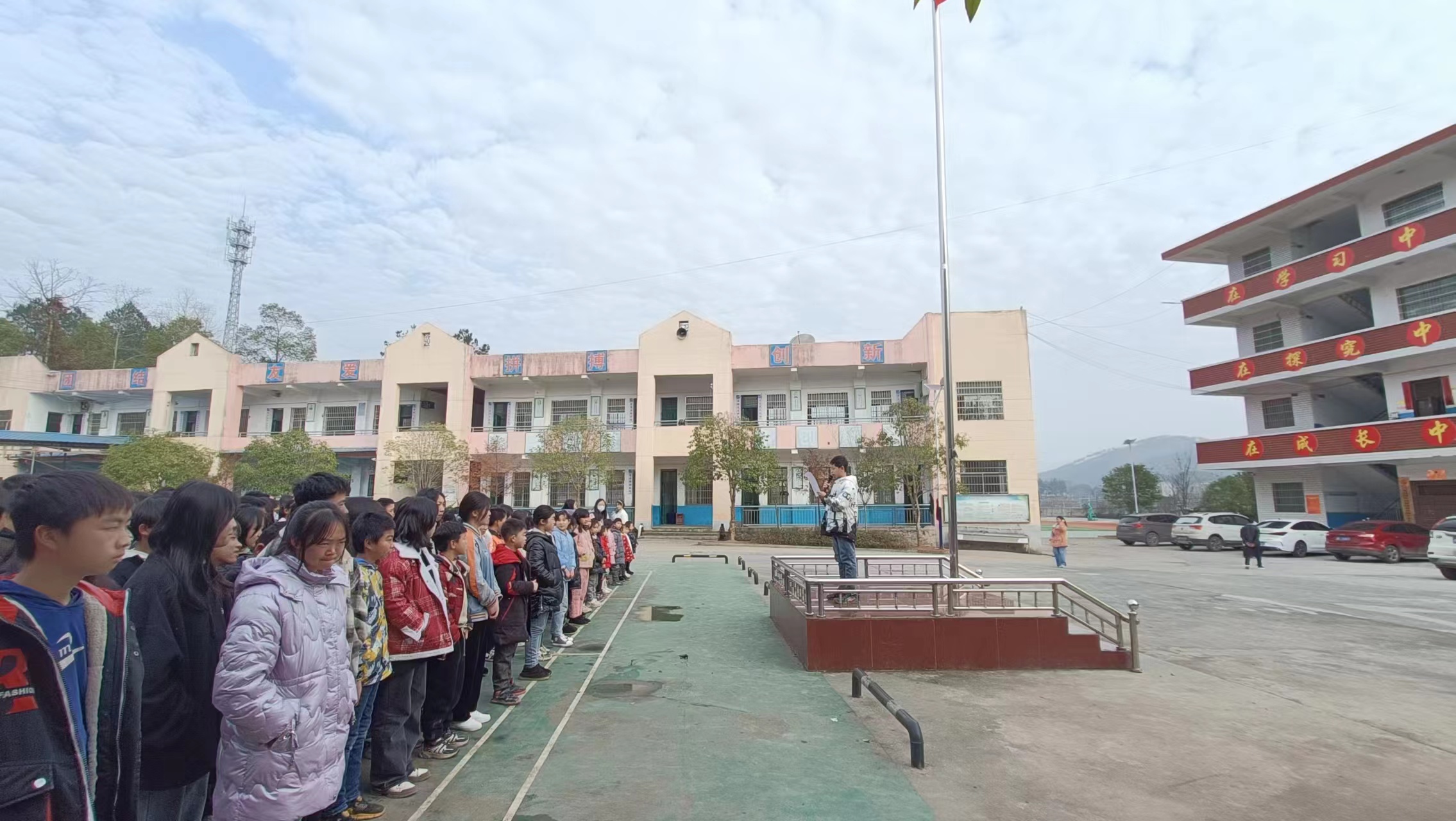 2月20日星期一早上,武冈市黄塘中学全体师生在操场举行了升国旗仪式。