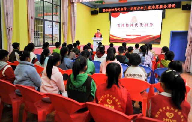 严华在市少儿图书馆,参加“雷锋精神代代相传”关爱少年儿童志愿服务活动