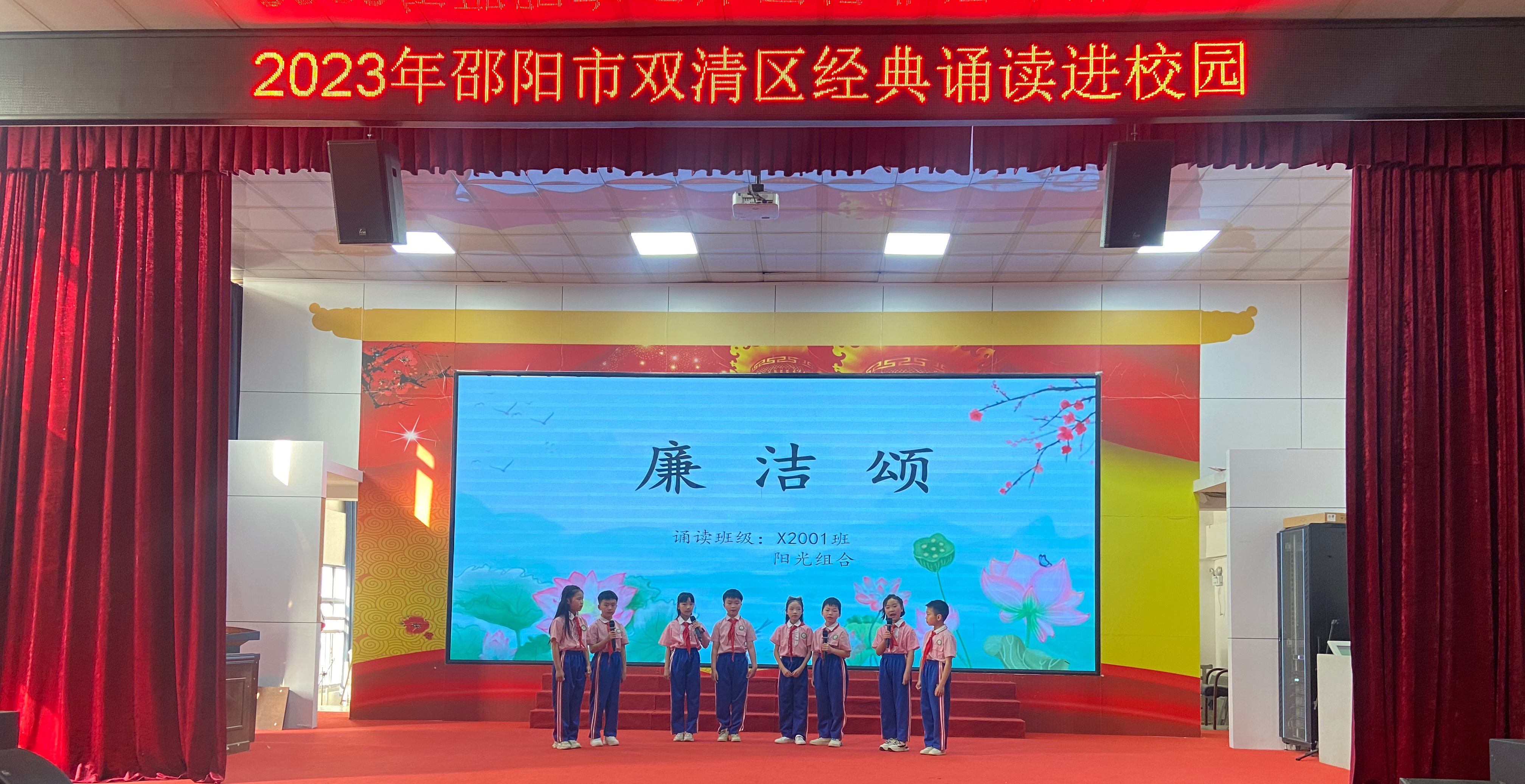 明德学校3-6年级的小选手们为此次比赛精心准备了朗诵内容。面对评委观众,他们吐字清晰,自然大方、神采飞扬。通过朗诵一段段诗文,讲述一个个故事,传达出自己对于清廉文化的理解,抒发出对践行清廉的倡导。