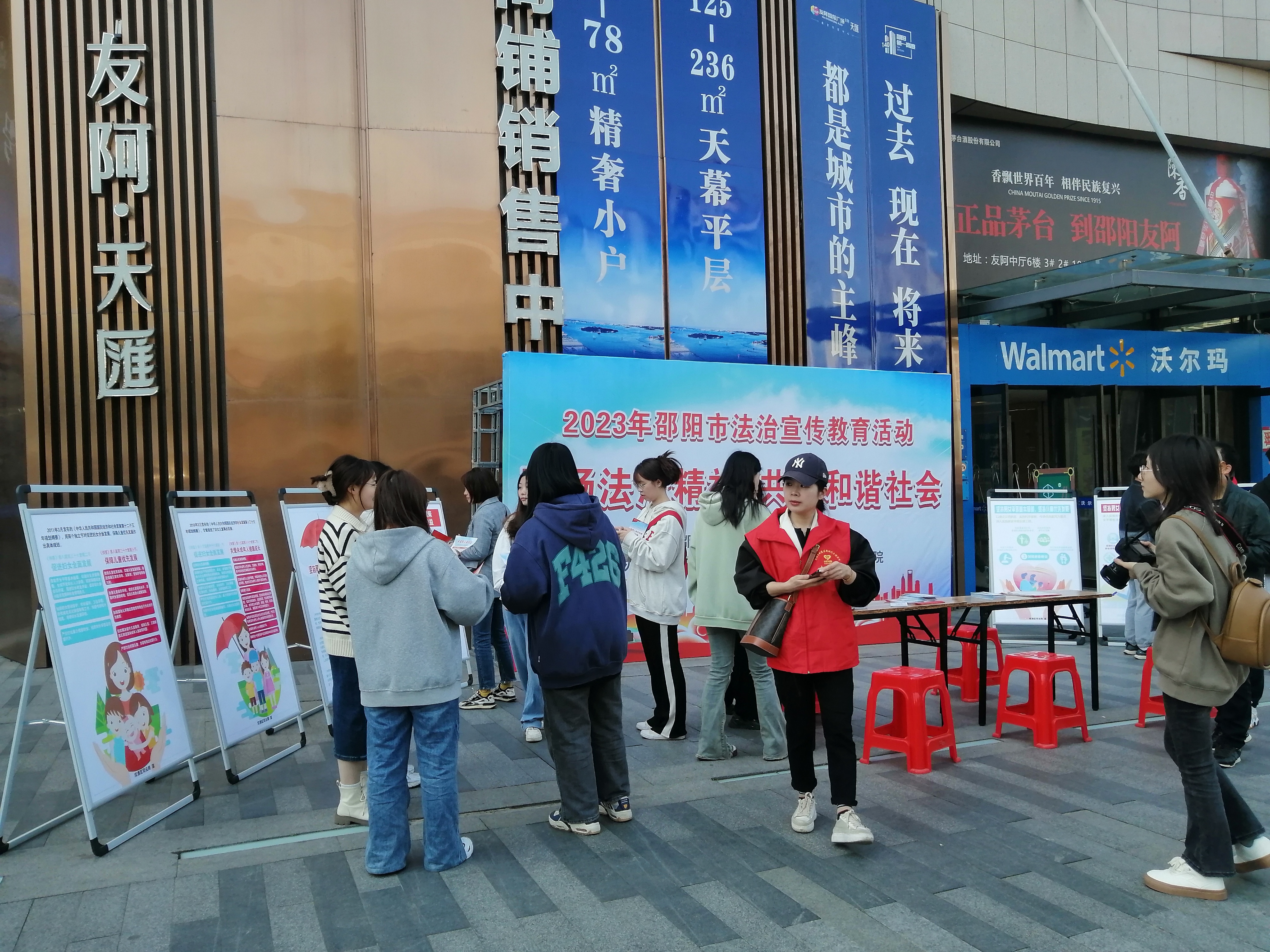3月17日上午,双清区司法局联合团区委、邵阳学院法商学院,在双清区友阿商业广场前坪组织“中华民族一家亲,同心共筑中国梦”为主题法治宣传活动。