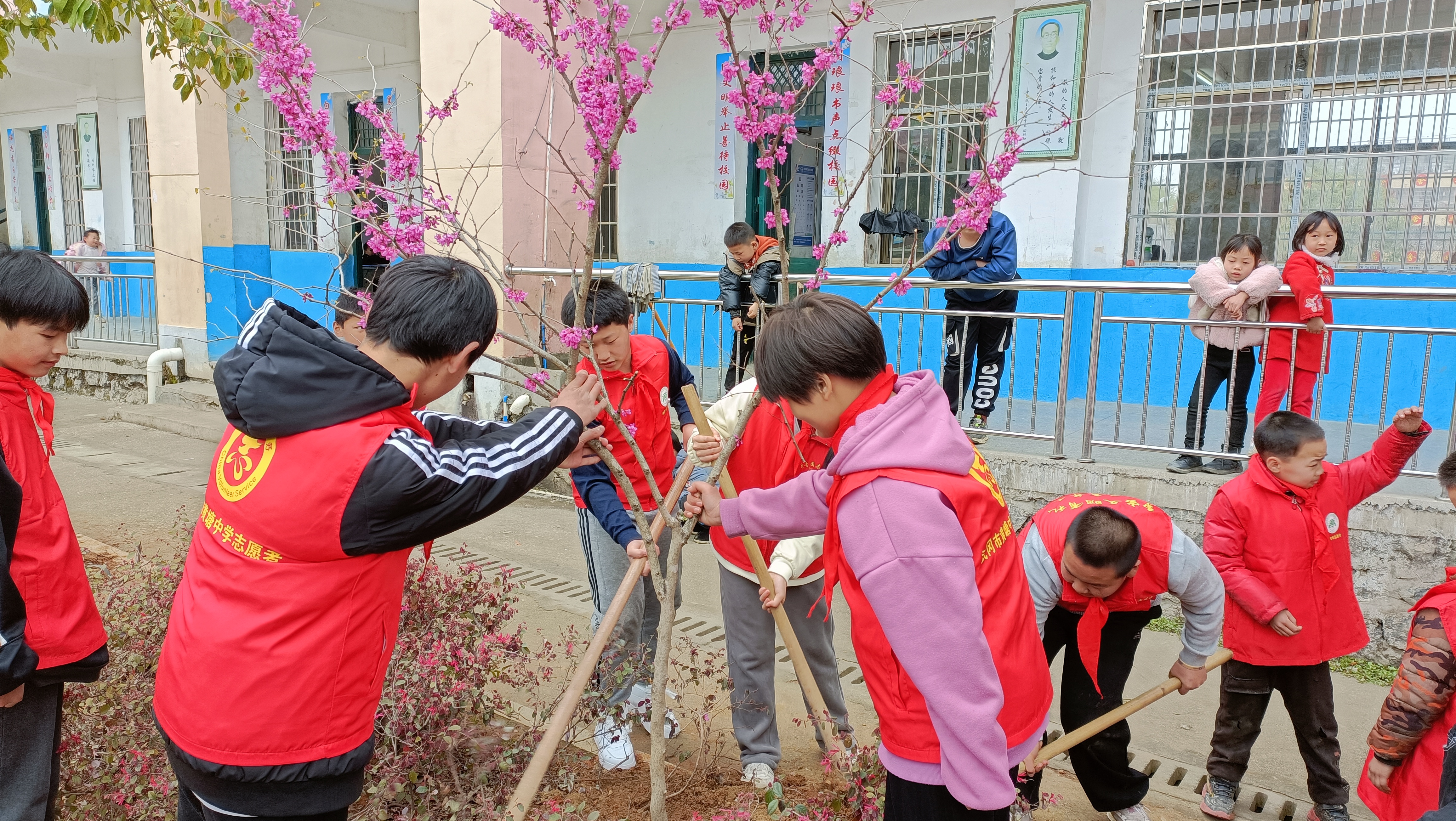 下午各班学生代表在学校进行了一次植树活动。在活动中,同学们热情高涨,团结合作,为树苗培土、浇水,在大家的共同努力下,一株又一株的小树苗屹立在了春风中。