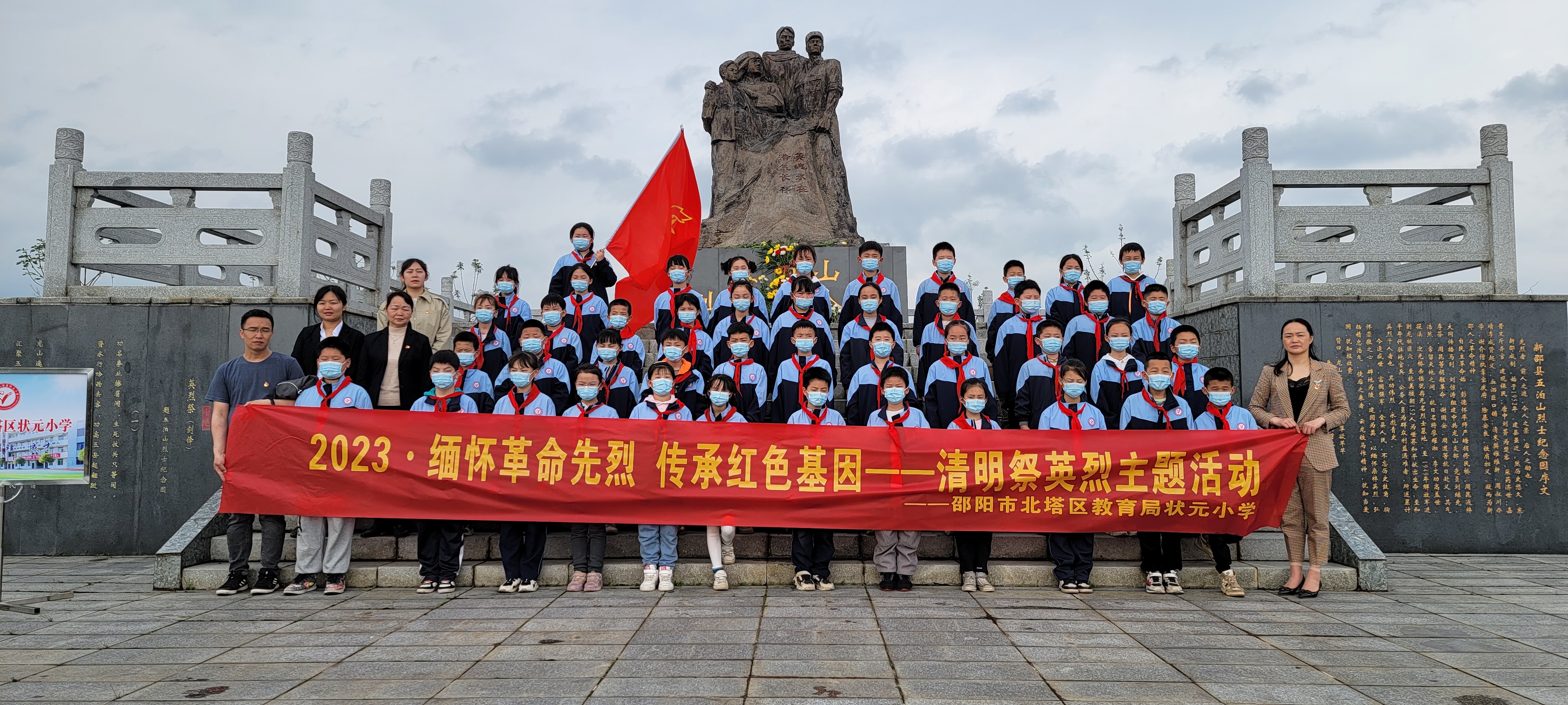 "青山有幸埋忠骨,烈士墓前抚英魂"。4月3日,北塔区状元小学少先队联合党支部组织少先队员和党员教师们一起踏着朗朗清风,伴着绵绵细雨,怀着无比尊崇的心情,来到了新邵五泊山烈士墓举行了“缅怀革命先烈,传承红色基因”清明祭英烈主题活动。