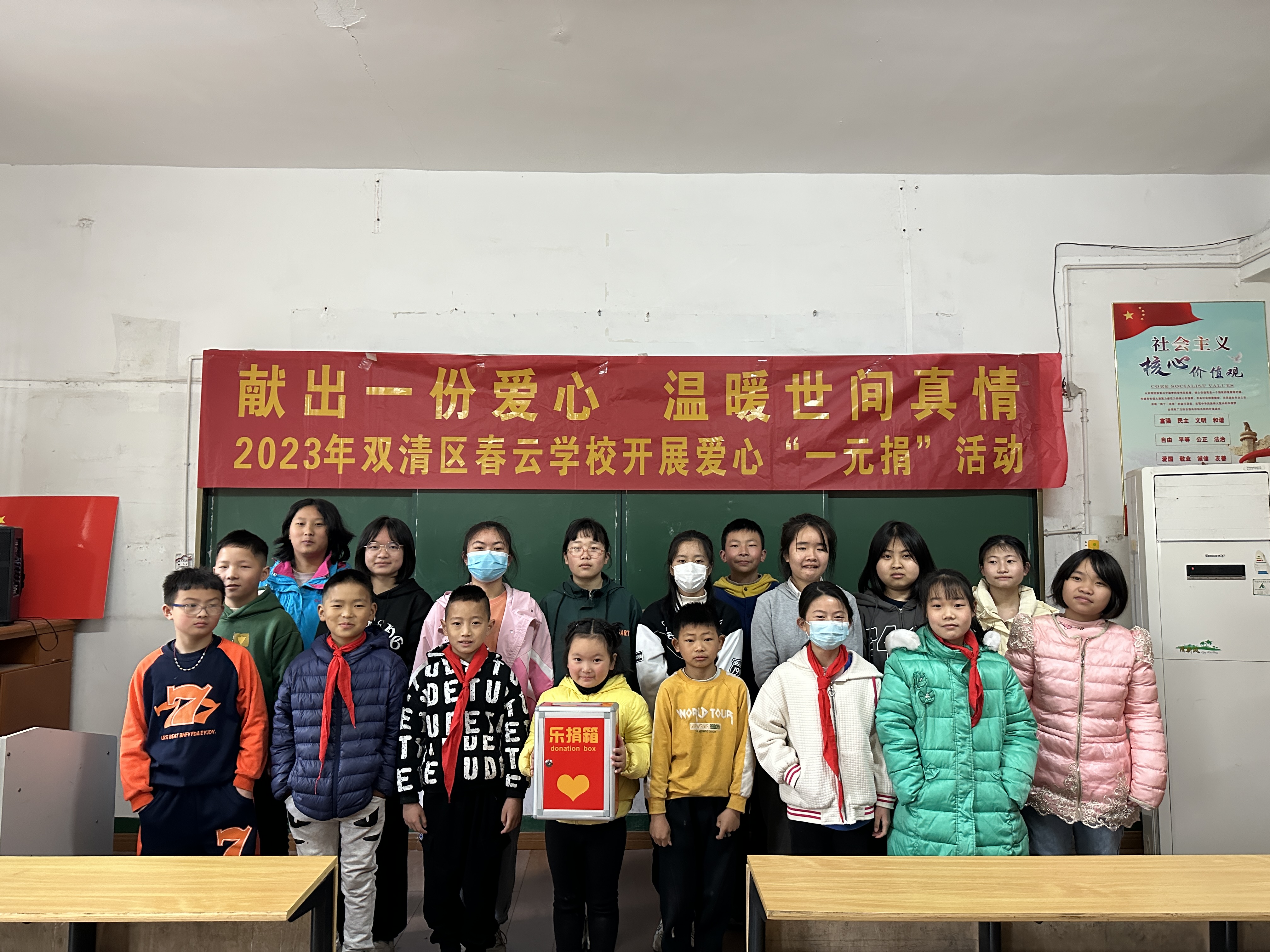 4月6上午,在双清区春云学校多媒体教室开展“一元捐”献爱心暖真情活动。当天师生共募捐得爱心款973元。